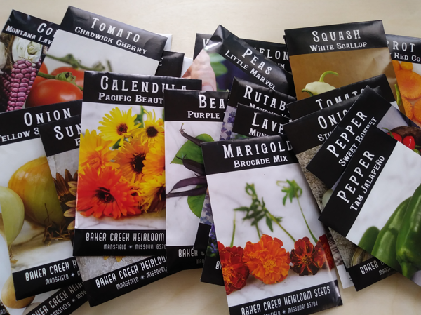 This batch is from Baker Creek Heirloom Seeds. One more pepper variety (Olly) and two varieties of potatoes are coming from High Mowing Seeds. Seed potatoes don’t ship until spring. I had already planted music garlic from Southern Exposure Seed Exchange in the fall. These are all excellent sources of reliable heirloom seeds.
