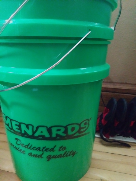 The temporary hoop house I rigged together in the fall is going to be a bucket garden. Menards has five-gallon buckets made with #2 plastic for a reasonable price. I’ll drill holes in the bottom, mix soil differently than for wooden raised beds, and hopefully have an extended growing season for some of the veggies.