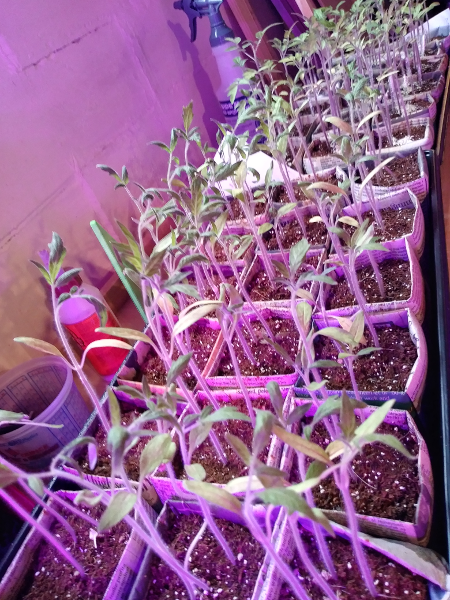 The tomatoes and peppers are not waiting very patiently to be planted outside. We have some really beautiful weather ahead, it looks like. So at least the tomatoes shouldn’t have to wait much longer to be in the covered beds or the finished greenhouse.