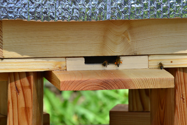 I made a hive wrap out of Reflectix and Velcro. The handles on the boxes create airspace between the wrap and the hive, which should be increasing the effectiveness of the wrap. For next winter, maybe I’ll use doubled up/sealed Reflectix with insulation sandwiched between the layers. I’ll just let the Warre hive design do the rest.