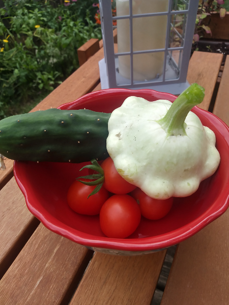 It’s my first year growing pattypans, and boy! Are they pretty! They are also delicious, cooked or raw. This type of squash has been affected by nothing but the infamous squash vine borer.