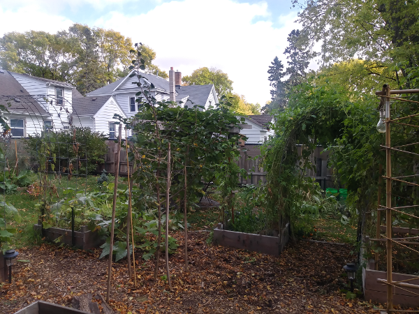 The garden has the usual fall mildewy leaves and wilting vines.