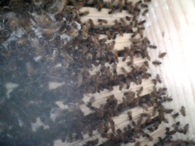 The picture quality isn’t great, but I can see clearly enough what the girls are up to. Which, in this case, is finally building comb in their second box.