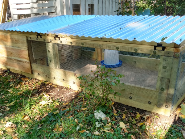 I finished this pen just in time, as some of the late-season hatches are ready to start getting used to the colder temps. It will be a little at a time, and with the help of a heater, no doubt. Just not so much that cold-weather feathers can’t grow in.