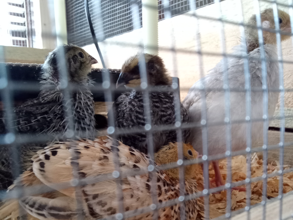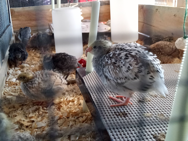 I’m going to have to either divide this batch of twenty-three quail chicks into separate levels of the hutch, or make a multiple-tote bin setup to get by until spring. They seem so big for two weeks. I expected Rosetta’s to be on the small side, and not at all as large as jumbos. This is a nice surprise.
