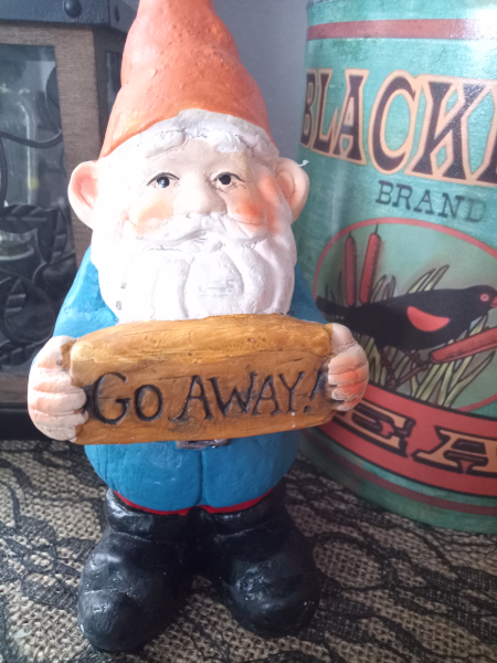 No, not the crabby gnome, although he was present. Found him at Runnings, and he is the perfect addition to the very small collection of gnomes I have stashed here and there.